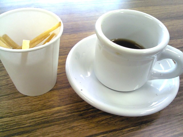 がコーヒーと芋けんぴを出してくれた。えっ!どういうこと。コー