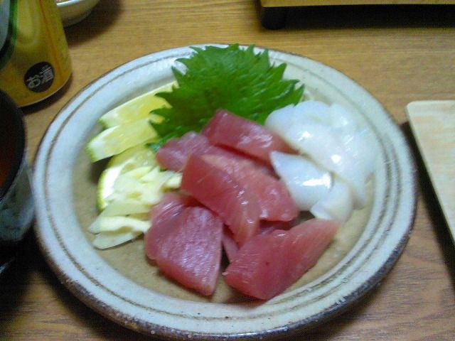 キハダマグロとモンゴイカのさしみの切り落としです。